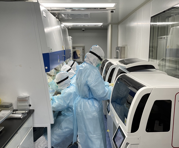 实验室是三班倒,24小时不停转的运作模式,数十台仪器一刻不停地工作着,30万人份样本,问鼎娱乐每天要进行近5万人份核酸检测。